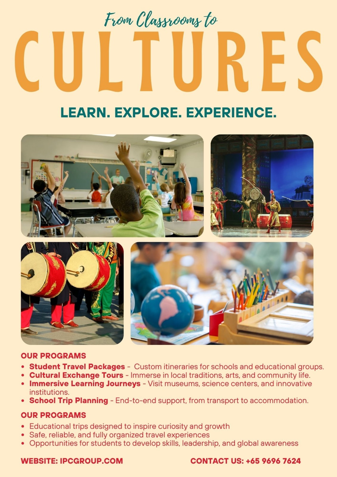 IPC Group curates student travel packages that balance learning with adventure. Whether it’s exploring Singapore’s heritage districts, visiting museums abroad, or engaging in service-learning projects, each itinerary is crafted to inspire curiosity and connection.